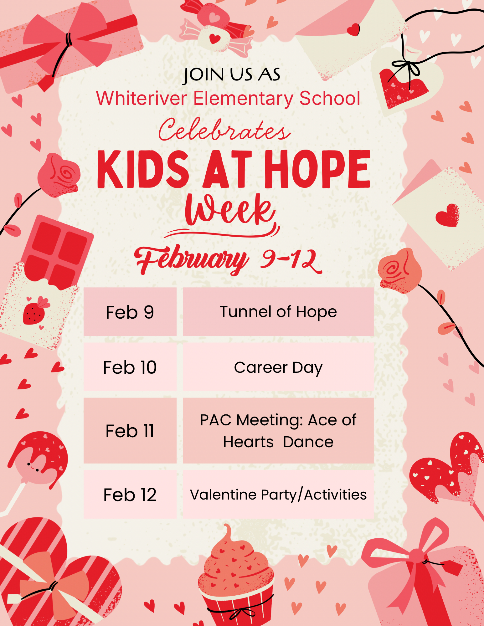 Feb. 11th: Ace of Hearts Dance @ 4:30 Feb. 12th: Valentine’s Day Activities