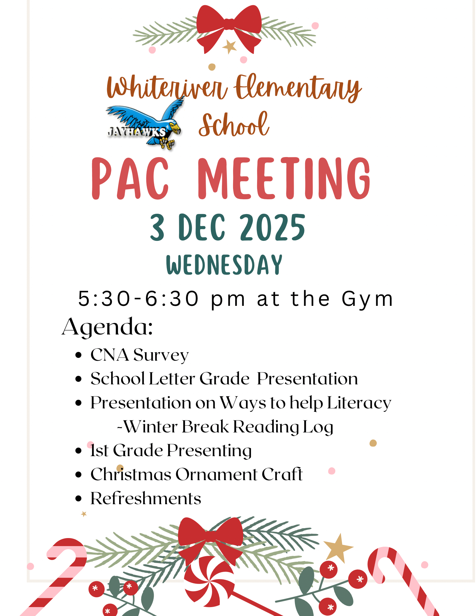 Dec. 3- 5:30 pm PAC Meeting: 1st Grade Presenting
